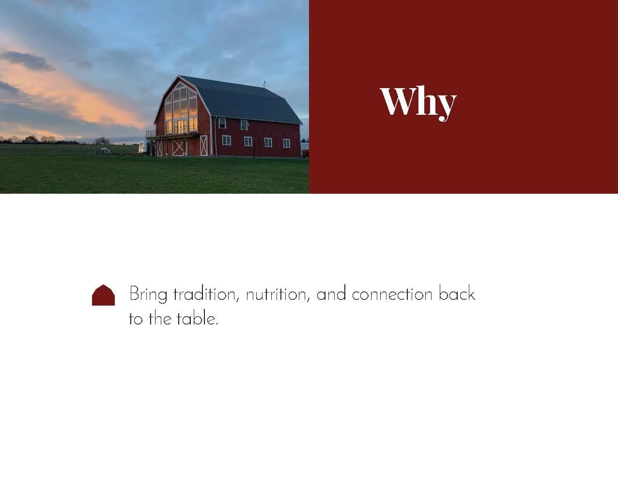 This enchanting sustainable family farm in Washington is all about bringing tradition and nutrition to the table. We wanted to communicate the impact their making on every level, from environmental health to family health. Once we saw the iconic barn on their property, we knew there was only one was to go with the logo.